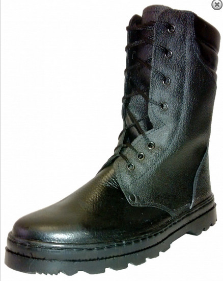 Ботинки мужские с высокими берцами,юфть-кирза,с мягким кантом,высота 25 см, без подкладки. Верх комбинированный из обувной искусственной кожи и обувной юфти. Кожа – Тулип- кожа с естественной лицевой поверхностью, эластичная, с прессованием плитой (или валом), с матовой или умеренно блестящей поверхностью, полуанилиновой отделкой. Утепление: искусственный мех. Производится с различными видами тиснения, как мелкими, так и крупными. Назначение - изготовление рабочей и защитной обуви.