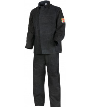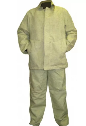 Костюм сварщика состоит из куртки и брюк. Предназначен для защиты от искр, брызг расплавленного металла. Воротник стояче-отложной. Куртка с центральной бортовой застежкой на петли и пуговицы и карманами в боковых швах. На куртке под проймой - вентиляционные отверстия. Брюки прямого силуэта с откидывающейся передней частью и застежками в боковых швах.